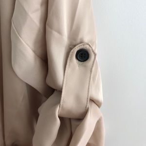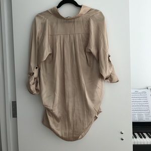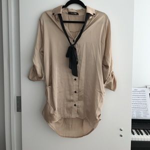 Loose fit, tailored cream gold silk button down, comes with black sash to tie as you please or leave as is for casual chic. Bought in Tokyo.