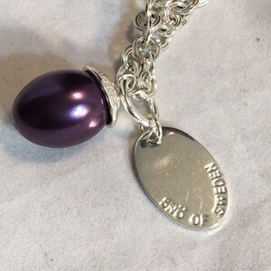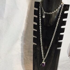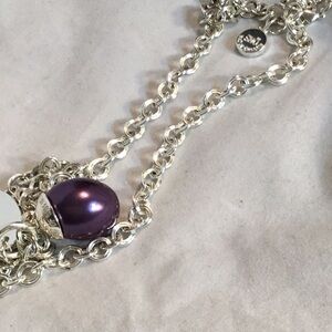 SNO OF SWEDEN LONG SILVER & PURPLE STONES/ PEARL NECKLACE