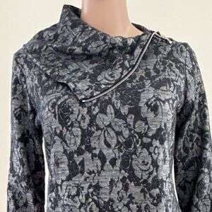 SNO SKINS Zip Neck Turtleneck Sweater Black Gray Jacquard Knit Size Small. Condition Excellent.