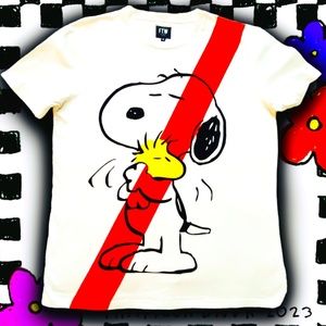 CLASSIC SNOPPY AND WOODSTOCK LUXURY TEE SHIRT WITH VELVET GRAPHICS IN GREAT CONDITION