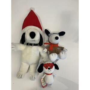 Perfect for the snoopy collector! Three cute Snoopy stuffed animals. Santa Snoopy sits about 10 inches tall and has tags. Cute Valentines Day ITTY BITTY Snoopy with tags. Metlife Snoopy with his flight goggles!