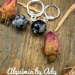 SNOWFLAKE OBSIDIAN SILVER HOOPS