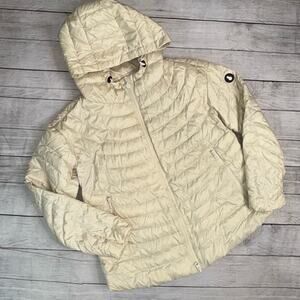 SNOWMAN NEW YORK Cream Hooded Lightweight Down Puffer Jacket Coat EUC Size XS