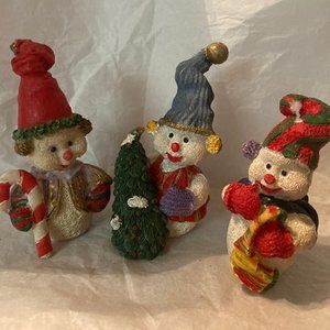 SNOWMEN 3 MINIATURE CUTE SMALL DESIGNS NEW CERAMIC