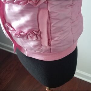 Snozu Girl’s Pink Puffer Vest Zip & Velcro & Pockets Size 14/16. Measurements: Pit to pit 18” Length 23”. In Excellent Condition
