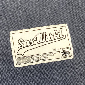The SNS B Ball Shirt Purple is inspired by classic baseball jerseys and made from a cotton blend. The Garment-dyed shirt features a terry applique “SNS World” artwork on the chest.
