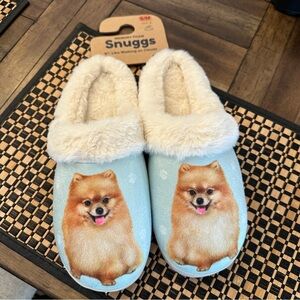 Cozy slippers with a cute Pomeranian print. Soft and warm for indoor comfort. Soft, cozy and pet-lover approved — these SNUGGS Memory Foam Pomeranian Slippers by E&S Pets are designed for all-day home comfort. They feature a cute Pomeranian dog print on top, a plush interior lining that keeps feet warm, and a cushioned insole for gentle support. The non-slip outsole adds stability on tile and wood floors, making them perfect for indoor lounging or quick steps outside. Size S/M fits women’s US 6-8.