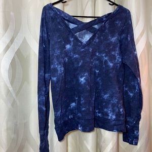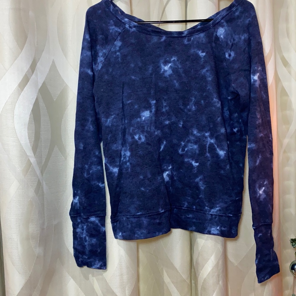 Blue tie dye crew neck. Soft material. With thumb holes. Never worn