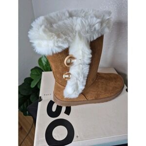 SO Abigail Women's Faux-Fur Winter Boots Brown Chestnut Size 8.5