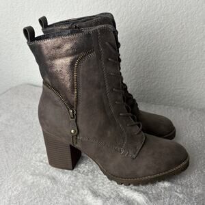 SO Authentic American Heritage Womens Brown Block Heel Lace-Up Boots Size 10M