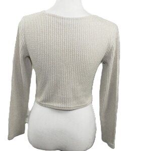 SO Beige Knit Long Sleeve Cropped Top Size Medium