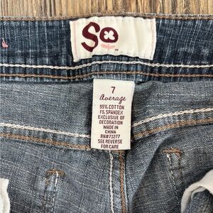 SO Beta Skinny Jeans Womens Juniors 7 Average Blue Denim Dark Wash Embroidered