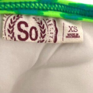 SO Bikini Swimsuit Halter Top Junior Sz XS Neon Animal Print Green Ruched Center