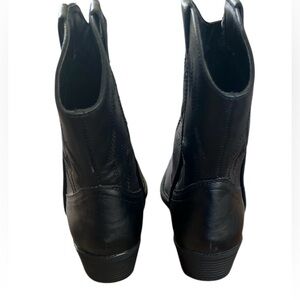 Stylish black heeled boots. Sleek design with detailed stitching. Perfect for any occasion.