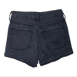 SO High Rise Shortie Shorts. Distressed black stretch denim. Size 0