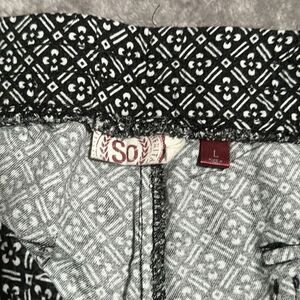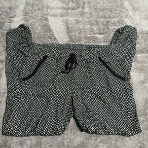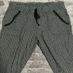 Excellent condition with no flaws 2010s rayon knit joggers with a geometric black and white pattern.