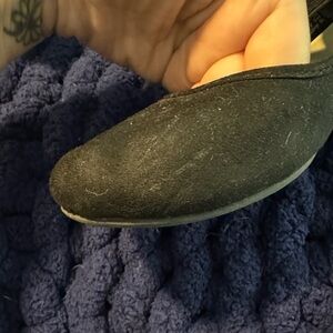 Chic black flats with comfortable elastic straps. Ideal for everyday wear.