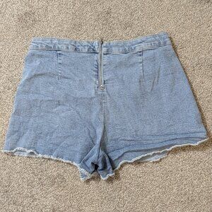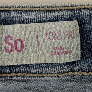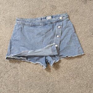 SO Blue Stretch Denim, Short, Button Cut-Off Skort; Back Zipper; Size 13 / 31