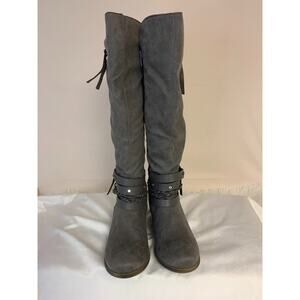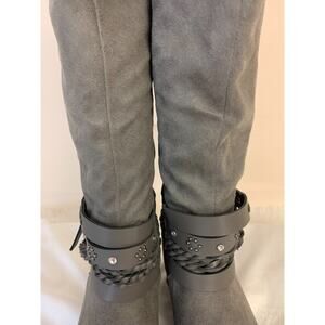 SO Boots Grey Womens Size 5 Mid-Calf Urban Cowgirl Western Faux Suede Boho Studs