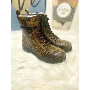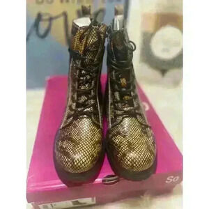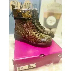 SO Bowfin Womens Combat Boots Snake Classic Zipper & Lace-up Closure Size 8 NIB