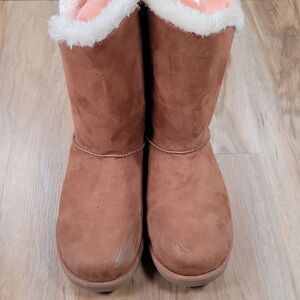 💜SO Brown & Cream Faux Fur Lined Junebug Boots Size 10