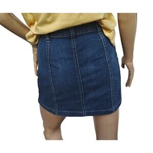 Cute and classic SO denim mini skirt in a versatile dark wash. Features a flattering high-rise waist and a full button-front placket for that vintage/Y2K look. Belt loops and hip pockets complete the casual vibe—easy to style with tees, sweaters, and sneakers.