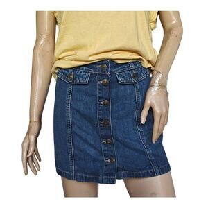 SO denim skirt, button up jean skirt, high waisted mini, dark wash, Y2K, casual summer skirt, juniors size 1 25W.