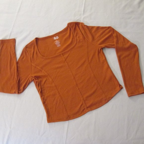 🧡 SO CINNAMON LONG SLEEVE SEAMED TOP – SIZE L