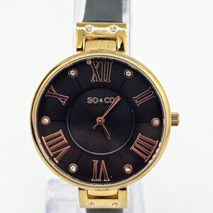 SO & CO Women's Watch 34MM Black Dial Gray Leather Band Straps New Battery