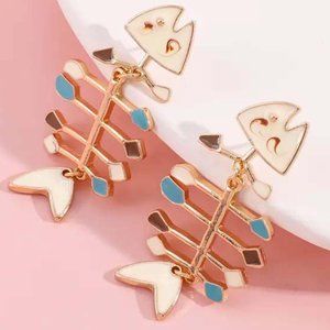 SO COOL RETICULATED FISH SKELETON BONES DANGLY EARRINGS 50