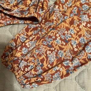 It is a cropped blouse… with front cinching.. a drop down tie… elastic at hem and cuffs…