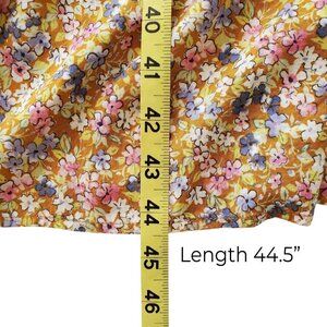 SO Cabin Fever Mustard Multi Floral Midi Dress Tiered Ruffle Hem Cottagecore M