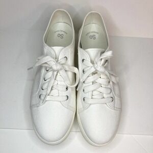 So Compelling White Canvas Platform Lace Up Sneakers Women's Size 10 Med. Breathable white canvas fabric upper lace up shoes. Women's Size 10 Med. Padded footbed with memory foam insoles. Traction sole. Round toe. Textile, man made materials. Colorscape: Compelling White. 162376 10/19 400487960154. In great, new without tags condition. Original box not included.