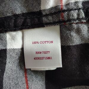 SO Cotton Perfectly Soft Flannel Large Women's Jrs White Black Plaid Button Up
