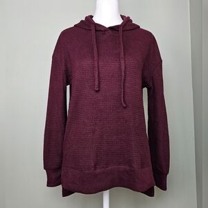 SO Cozy Waffle Knit Tunic Hoodie Sweater XS BURGUNDY