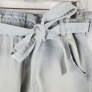 SO Denim Skirt Juniors 11 Paperback Belted Cotton Light Wash Raw Hem