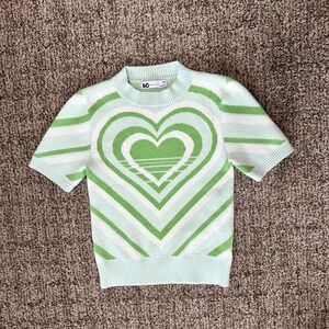 SO EUC Juniors Mint Heart Short Sleeve Sweater size XS