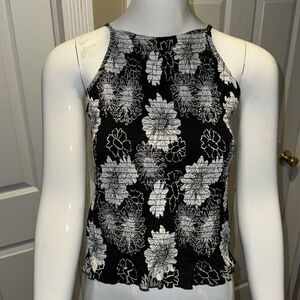 SO FLORAL black & white  stretch ruffle top