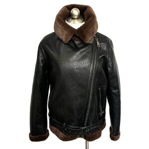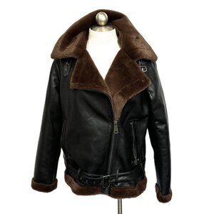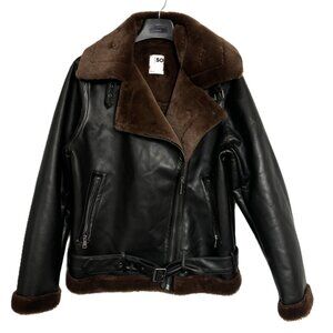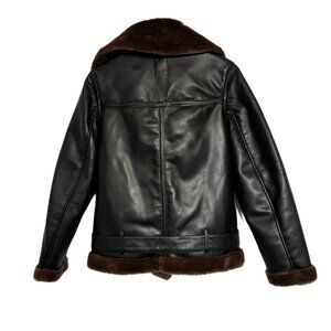 SO Faux Leather and Fur Moto Flight Aviator Bomber Jacket