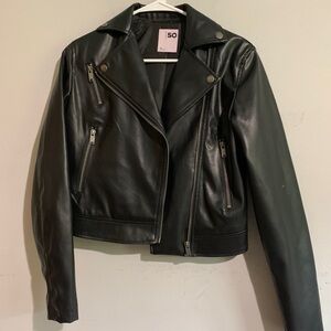 SO Faux-Leather Black Moto Asymmetrical Zip Up Biker Jacket NWOT Size: XS