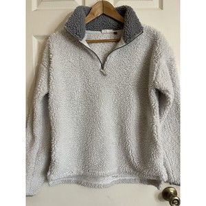 SO Fleece Teddy Size L White Faux Fur Sherpa Sweatshirt Half Zip