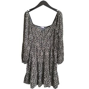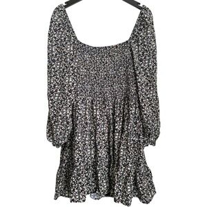 SO Floral Dress Sz XL Black Dress with Flowers Smocked Top Lined