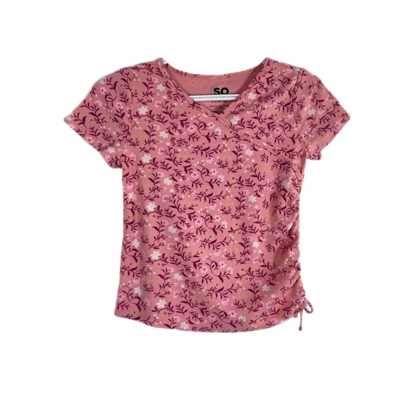 SO Girl’s Floral Ruched Drawstring Side Ribbed Top