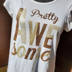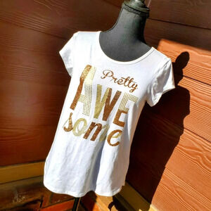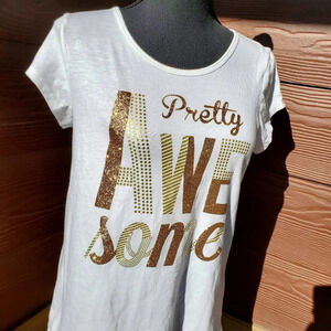 SO Girls Size 16 Pretty Awesome T-Shirt White and Gold Foil