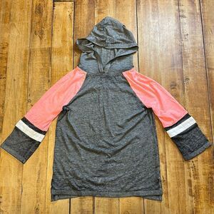 SO Girls size 7 Gray and Pink Lightweight Hooded Long Sleeve Sporty Tee