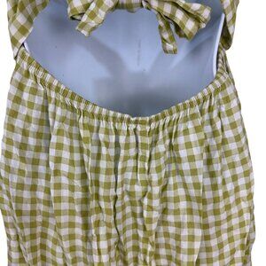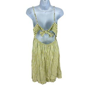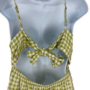 SO Goods For Life Green Gingham Open Back Bow Mini Dress Size Medium