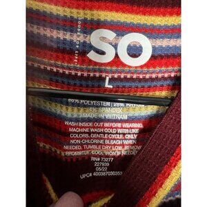 This SO brand top features a vibrant striped pattern and a stretchy, comfortable fit. Ideal for layering or wearing on its own, it adds a pop of color to any wardrobe. In good pre-owned condition with no notable flaws. Fast shipping.