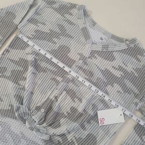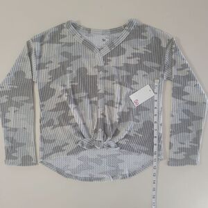 SO Gray Camo Button-Front Brushed Waffle-knit Pullover Top