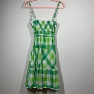 SO Green White Plaid Spaghetti Strap Mini Sundress Medium