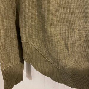 SO Henley Hoodie Army Green Hi Low Thermal Cotton Waffle Shirt, Size Large